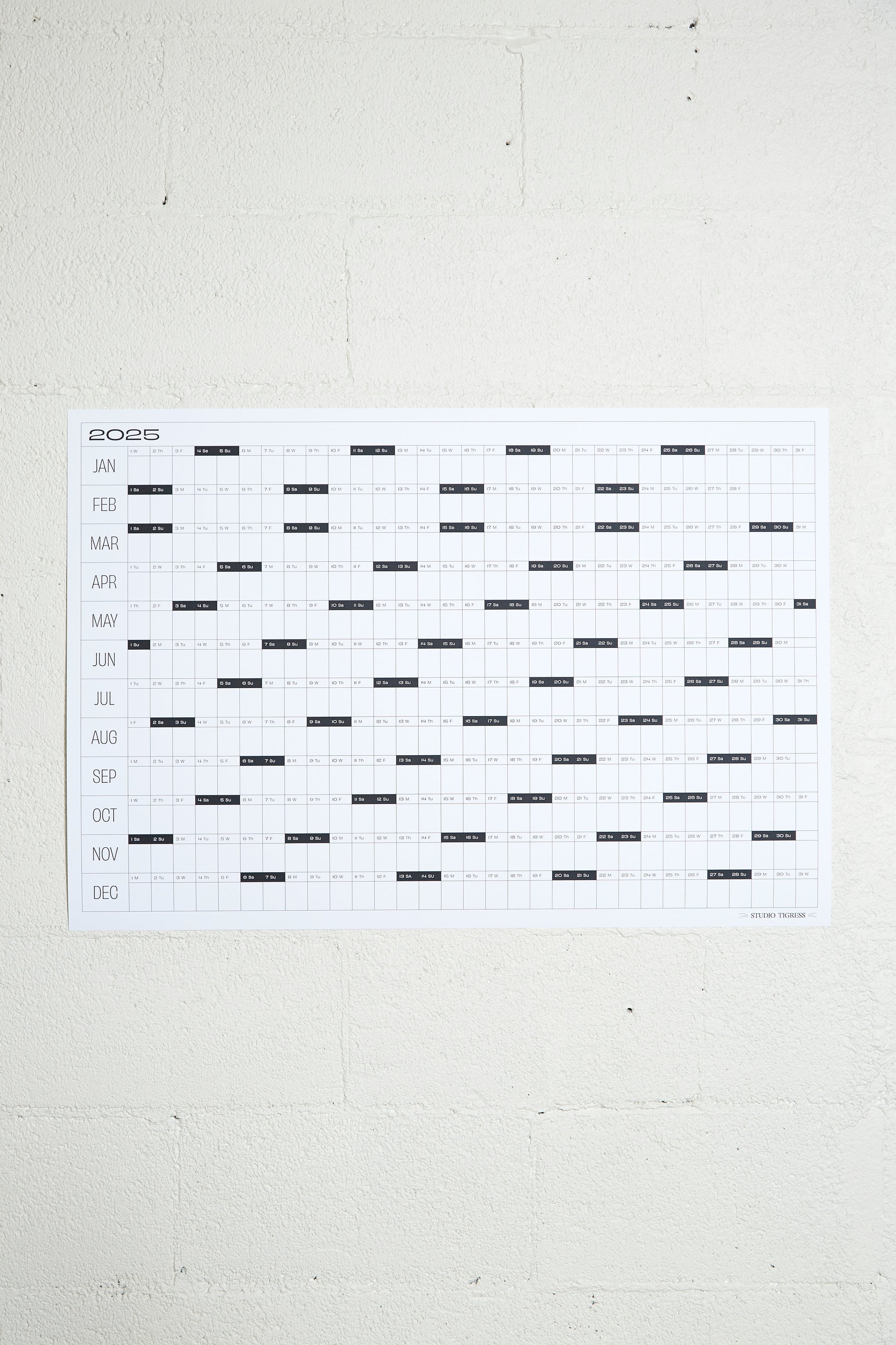 Art and function. Mark it up or leave it blank. Each calendar contains the full year on one design-forward page. Locally printed as a fine art giclee on premium weight, uncoated paper - ensuring superior color depth, sustainability and usability.ย
