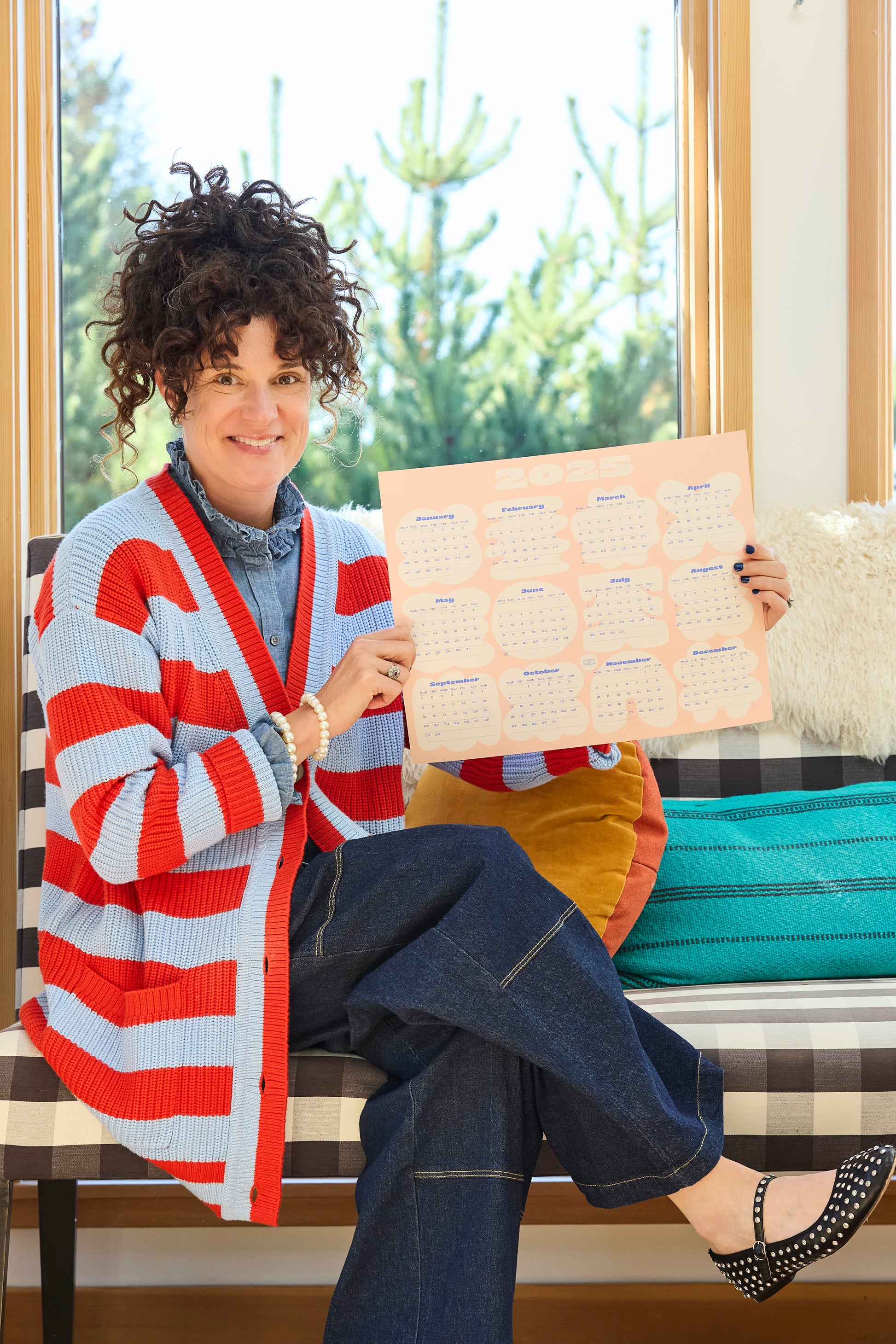 Graphic and playful. The 2025 Shapes Calendar Collection is available in 2 colors (Peche and Confetti) and 2 sizes (30.75" x 25" or 15.4" x 12.5").